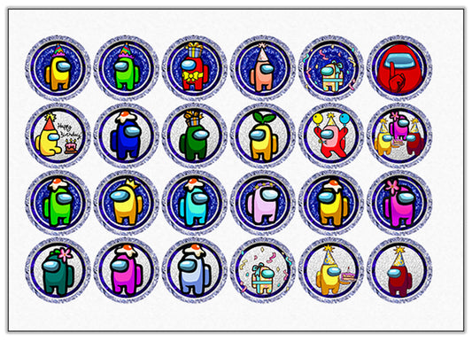 24 Among Us Edible Cupcake Toppers - Precut on Wafer Paper, Sugar Sheet, or without cutting Chocotransfer