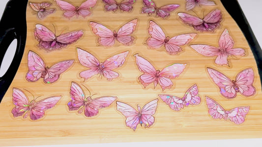 20pcs Rose Holographic Butterfly Stickers - Waterproof PET Crystal Laser Stickers for Scrapbooking, DIY Crafts, Journaling, and Decoration