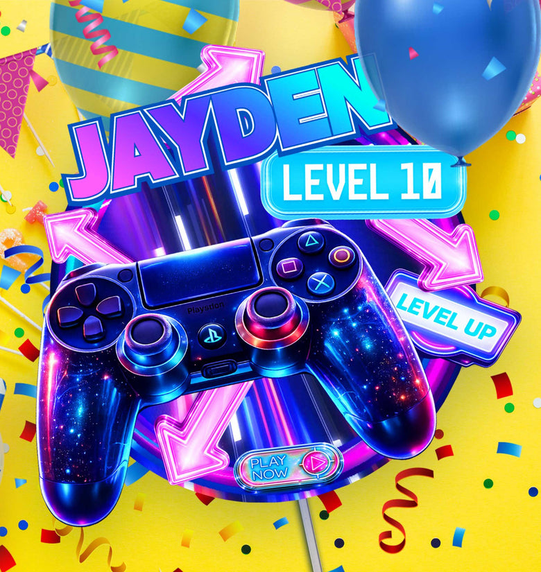 Make a gamer’s birthday unforgettable with this personalized gaming cake topper featuring a bold “Level Up” design. Customized with any name and age, this vibrant topper is perfect for video game–themed parties and adds a fun, high-energy touch to any birthday cake.