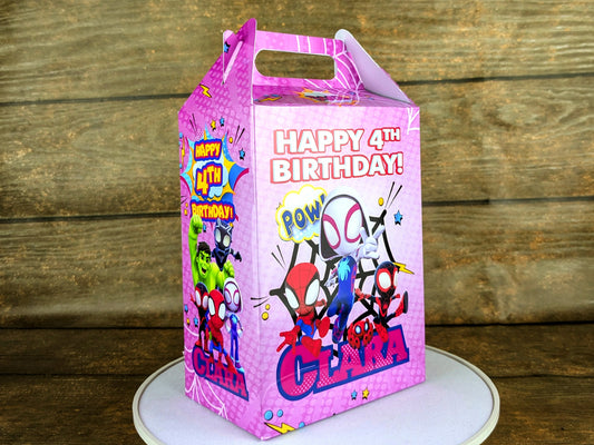 Spidey Themed Gable Box for Girls: Personalized Meal Box for Burger & Fries Party Favors! Perfect for Birthdays, Weddings, and More!