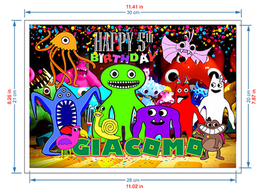 Garten of Banban Birthday Themed Edible Cake Topper - Rectangular Design - Wafer Paper, Sugar Sheet, Chocotransfer