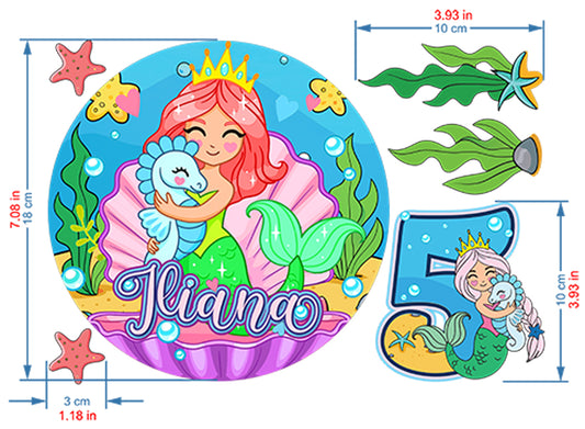 Set of 6 Little Mermaid and Seahorse Edible Cake Toppers - Precut on Wafer Paper, Sugar Sheet, or Chocotransfer without Cutting