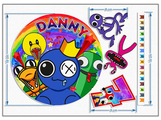 Set of 5 Rainbow Friends Edible Cake Toppers - Precut on Wafer Paper, Sugar Sheet, or without cutting Chocotransfer