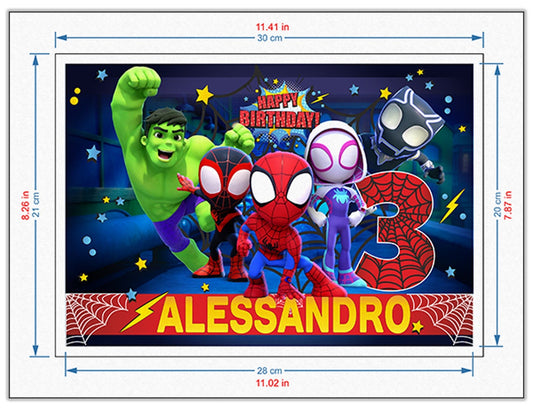 Spidey Birthday Themed Edible Cake Topper for Girls - Rectangular Design - Wafer Paper, Sugar Sheet, Chocotransfer