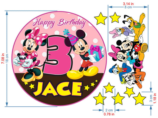 Set of 9 Edible Mickey and Minnie Mouse Cake Toppers - Precut on Wafer Paper, Sugar Sheet, or without cutting for Chocotransfer.