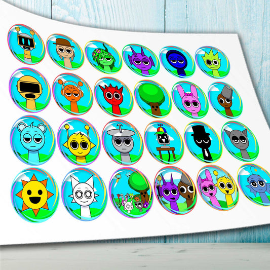 24 Sprunki Kids Edible Cupcake Toppers - Precut on Wafer Paper, Sugar Sheet, or without cutting Chocotransfer