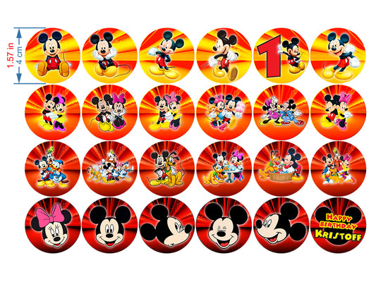 Customized Edible Cupcake Toppers featuring Mickey Mouse and Friends - 24 Pre-Cut Pieces on Wafer Paper, Sugar Sheet, or Uncut Chocotransfer