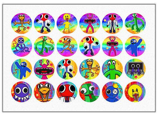 Rainbow Friends Edible Cupcake Toppers - 24 Pre-Cut Pieces on Wafer Paper, Sugar Sheet, or without cutting Chocotransfer