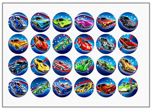 Race Cars Edible Cupcake Toppers - 24 Pre-Cut Pieces on Wafer Paper, Sugar Sheet, or without cutting Chocotransfer