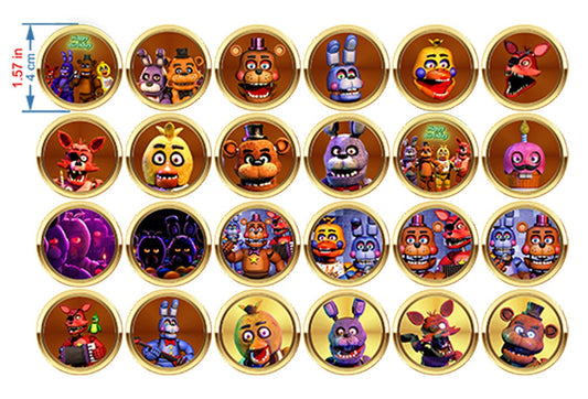 24 Five Nights at Freddy's Edible Cupcake Toppers - Choose from Wafer Paper, Sugar Sheet, or Chocotransfer with No Cutting Required