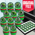 • Edible Hulk cupcake toppers with personalization 24 ready-made pieces - on waffle paper, sugar sheet or no-cut Chocotransfer
