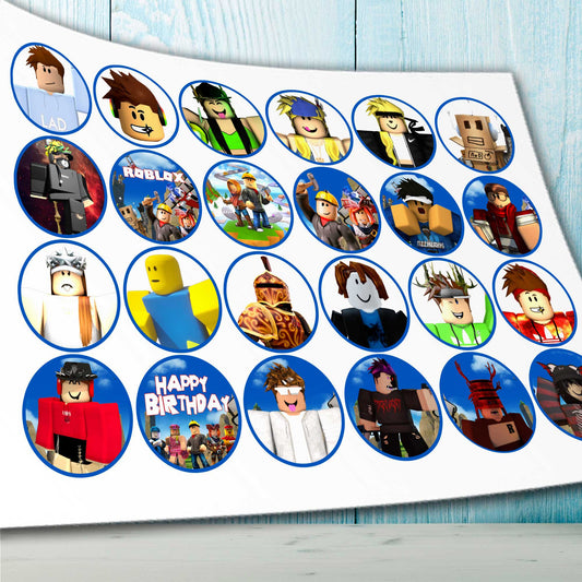 24 Roblox Edible Cupcake Toppers – Precut on Wafer Paper, Sugar Sheet, or Uncut Chocotransfer