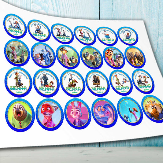 24 Zootopia 2 Edible Cupcake Toppers – Precut on Wafer Paper, Sugar Sheet, or Uncut Chocotransfer