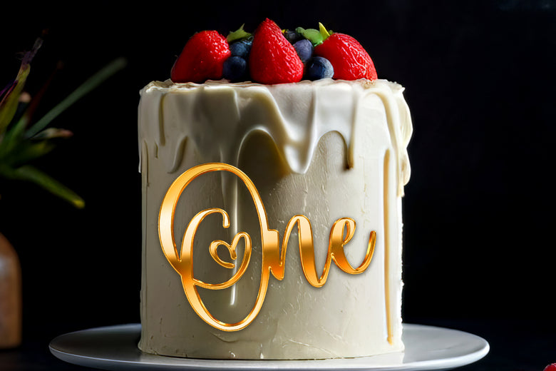 Náš elegantní dortový toner "One" vyrobený ze zlatého nebo stříbrného zrcadlového akrylu je ideální pro přidání zvláštního nádechu vašemu dortu! 🌟✨
