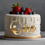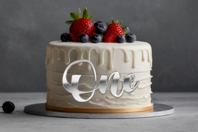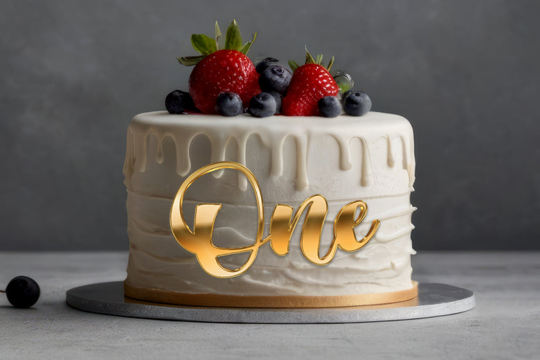 Náš elegantní dortový toner "One" vyrobený ze zlatého nebo stříbrného zrcadlového akrylu je ideální pro přidání zvláštního nádechu vašemu dortu! 🌟✨