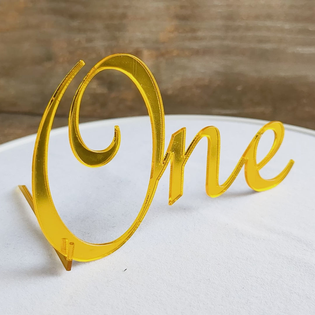 Tortenaufsatz „One“ aus verspiegeltem Acryl in Gold oder Silber | Tortendekoration zum 1. Geburtstag | Tortenaufsatz zur Feier des ersten Jahres