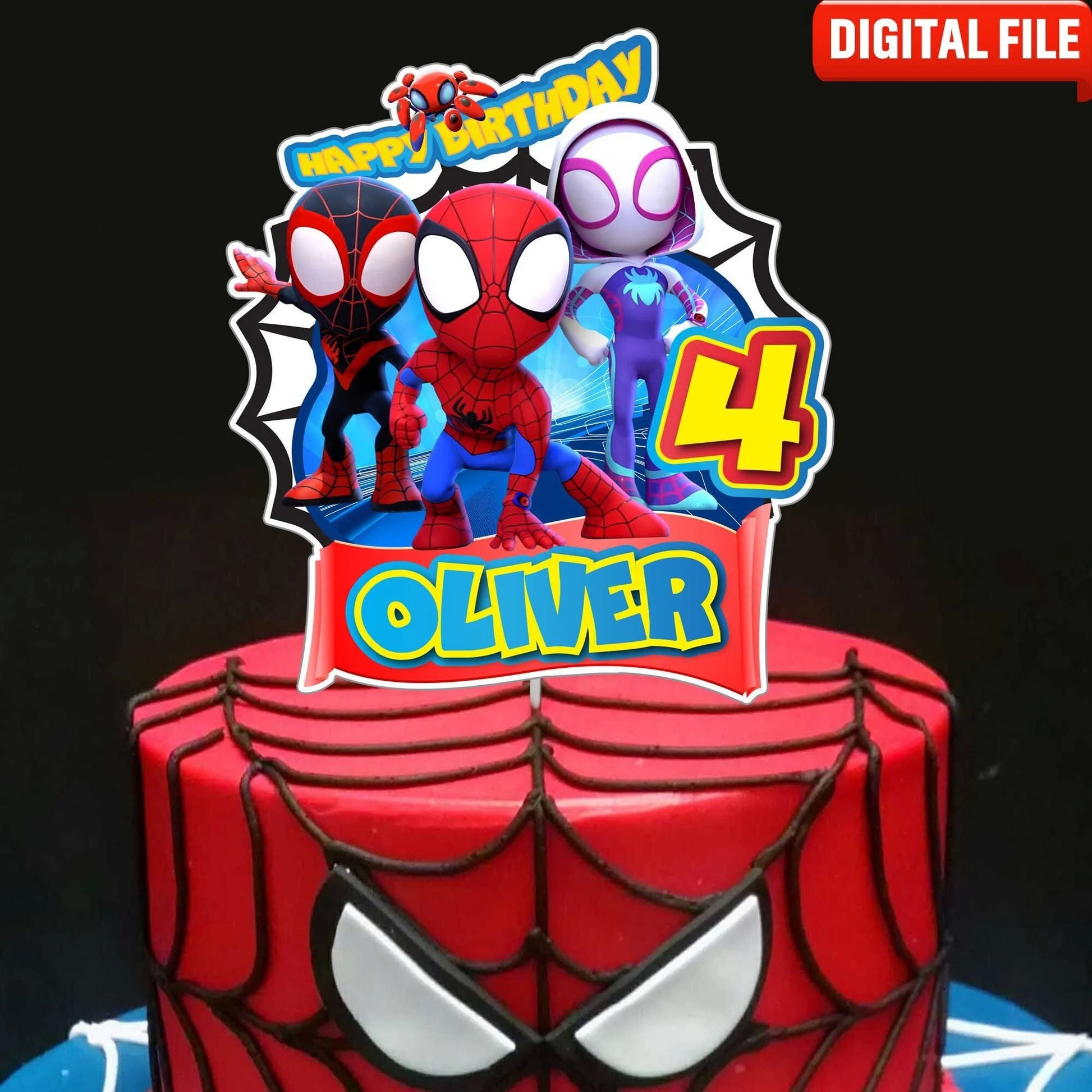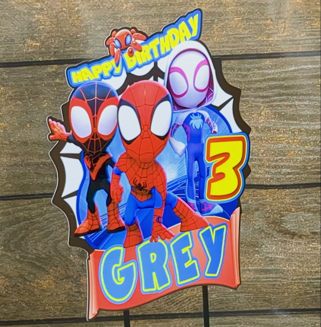 Spidey-Geburtstags-Kuchenaufsatz aus Kunststoff, Spidey-Themenparty, personalisierter Kuchenaufsatz