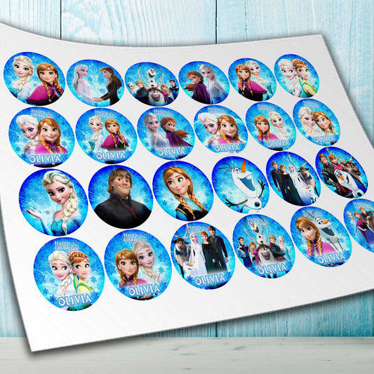 24 Frozen Edible Cupcake Toppers - Precut on Wafer Paper, Sugar Sheet, or without cutting Chocotransfer