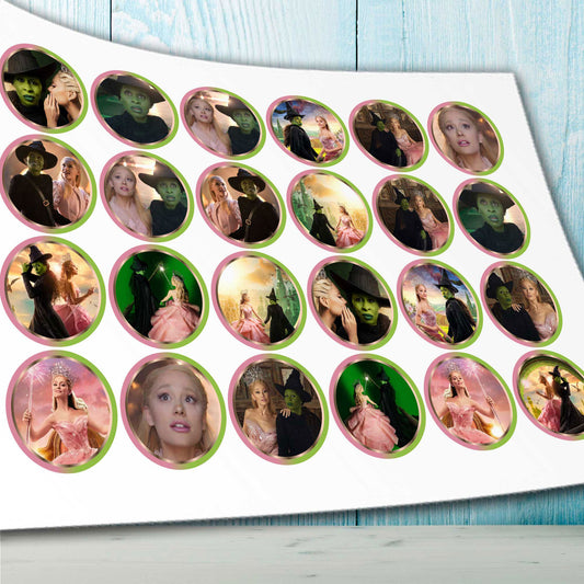 Wicked Edible Cupcake Toppers - 24 Pre-Cut Pieces on Wafer Paper, Sugar Sheet, or without cutting Chocotransfer