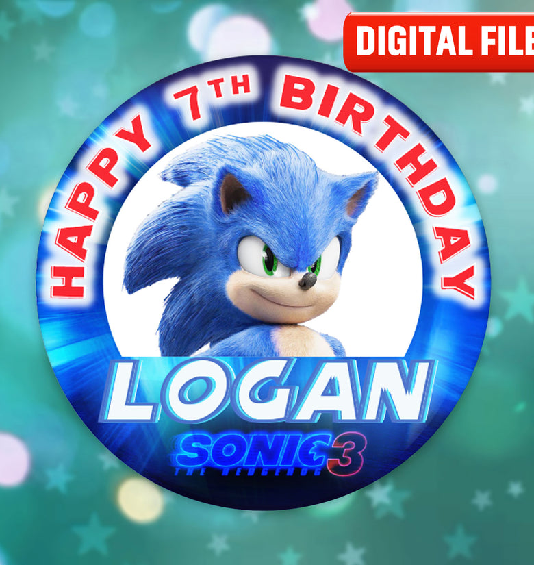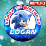Custom Sonic birthday button pin or fridge magnet. Personalized celebration accessory with name option. Available in multiple sizes and finishes.