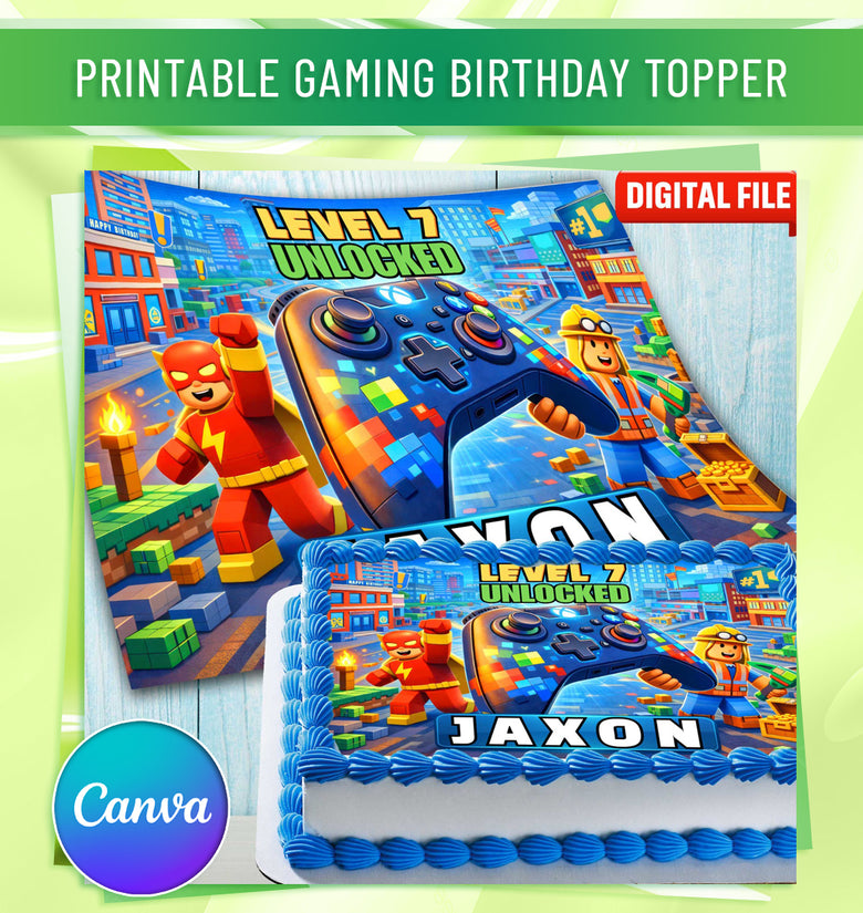 Gaming Birthday Cake Topper – Custom Edible Image with Name for Kids Party
