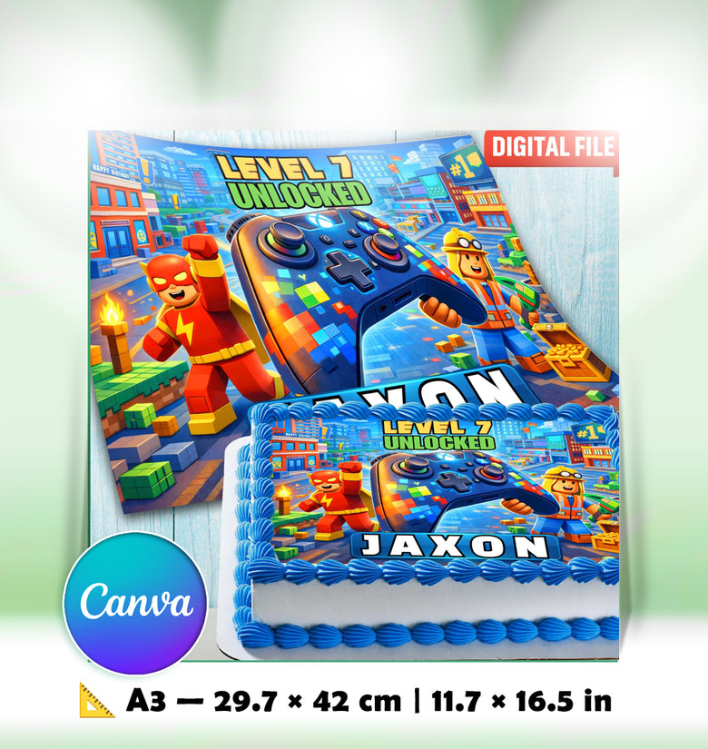 Make your child’s birthday extra fun with this gaming-themed edible cake topper, inspired by colourful block-style worlds and video game adventures.