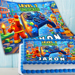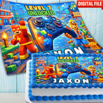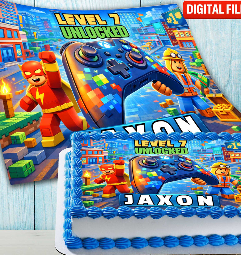 Make your child’s birthday extra fun with this gaming-themed edible cake topper, inspired by colourful block-style worlds and video game adventures.This personalised edible imag...