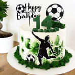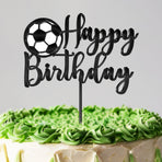 • Black Acrylic Football Cake Topper | Sports Birthday Decoration | Customizable Football Design | Elegant "Happy Birthday" Cake Decor