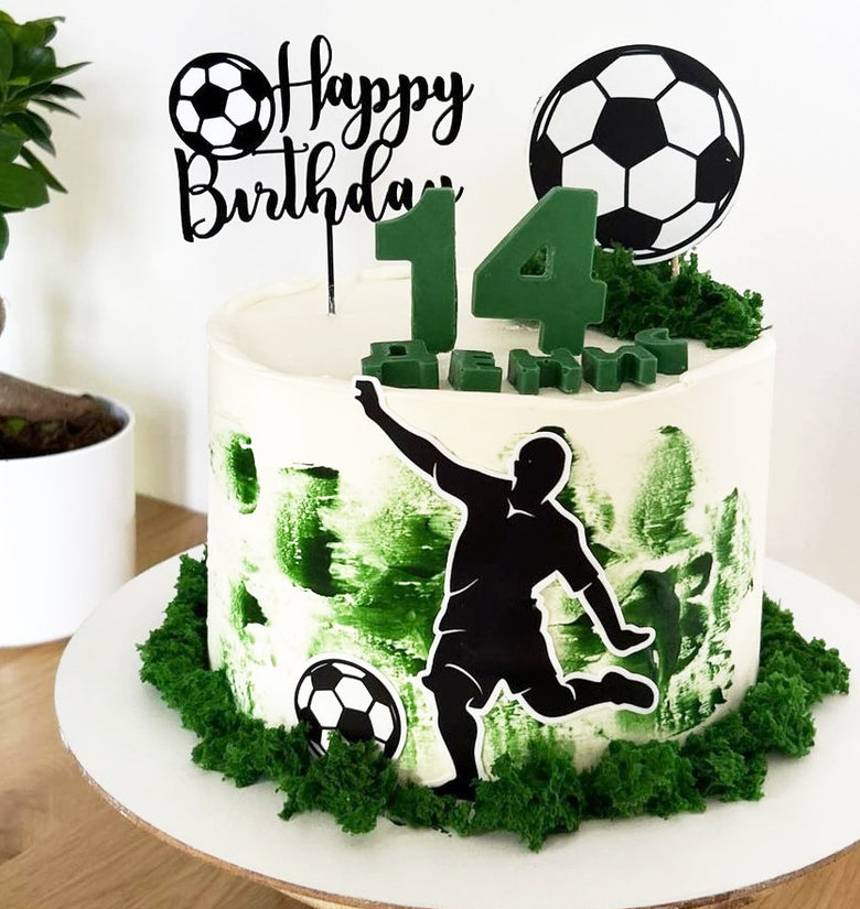 Made from durable black acrylic, this football-themed cake topper is perfect for any sports lover's birthday celebration! πŸ–€βš½