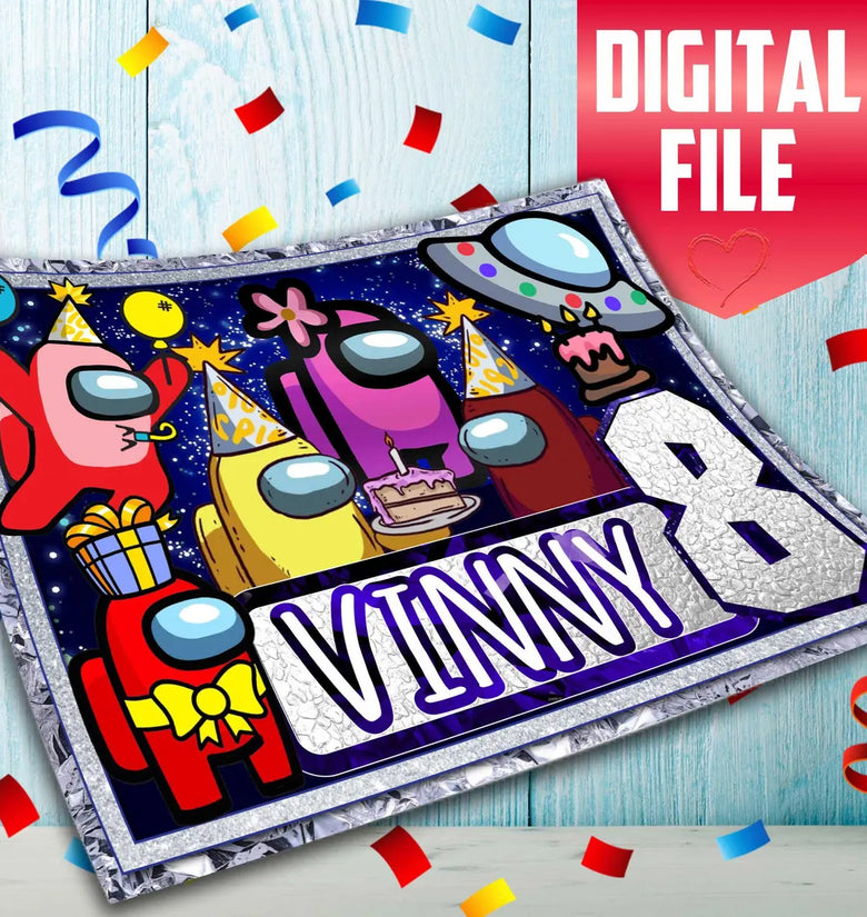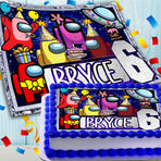 🎉 Make your party out of this world with this Among Us Birthday Themed Edible Cake Topper – Rectangular Design! 🚀🎂