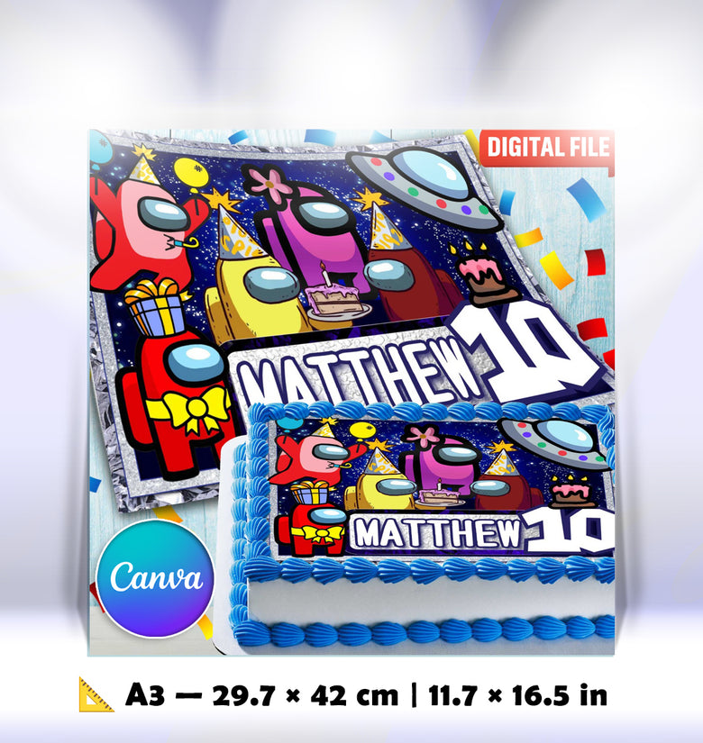 Among Us edible cake topper — perfect for themed birthday cakes and gaming parties. Precut and ready to use on buttercream or fondant. Available in A4 and A3 sizes, printed with food-grade inks.