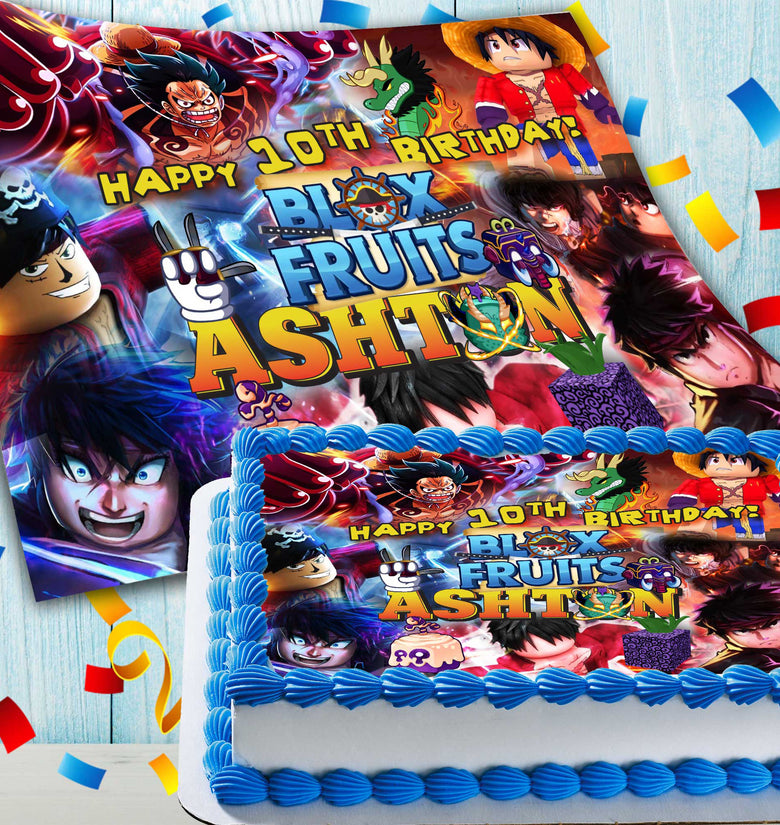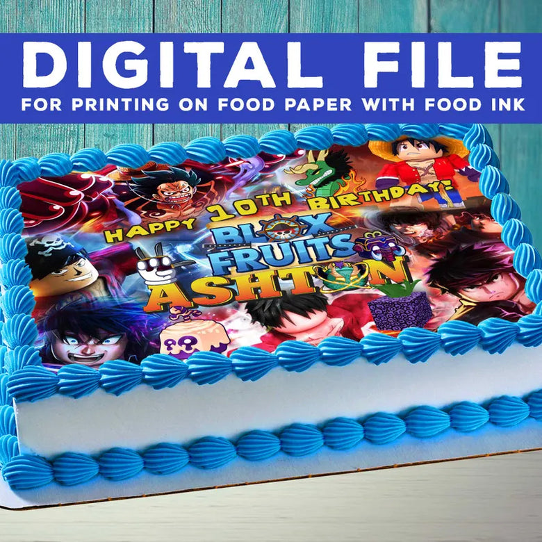 Blox Fruits Edible Cake Topper for Birthday - Roblox Themed Rectangular Design - Wafer Paper, Sugar Sheet, Chocotransfer