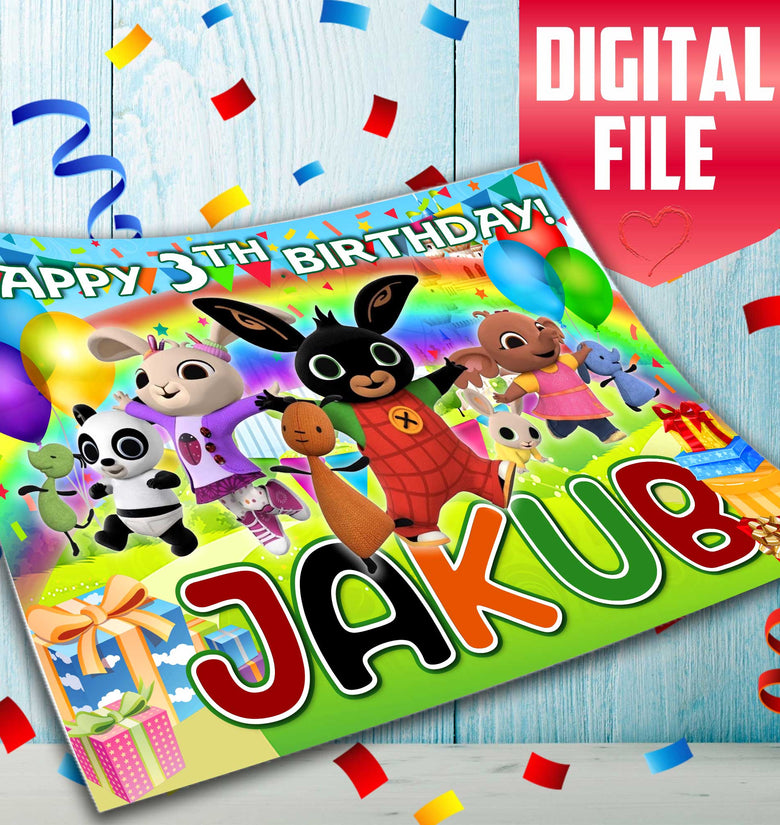 • Bunny Bing Birthday Themed Edible Cake Topper - Rectangular Design - Wafer Paper, Sugar Sheet, Chocotransfer