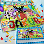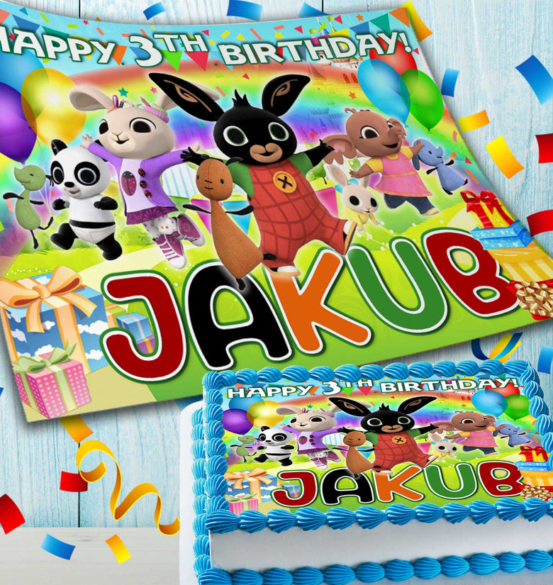 Bunny Bing Birthday Themed Edible Cake Topper - Rectangular Design - Wafer Paper, Sugar Sheet, Chocotransfer