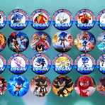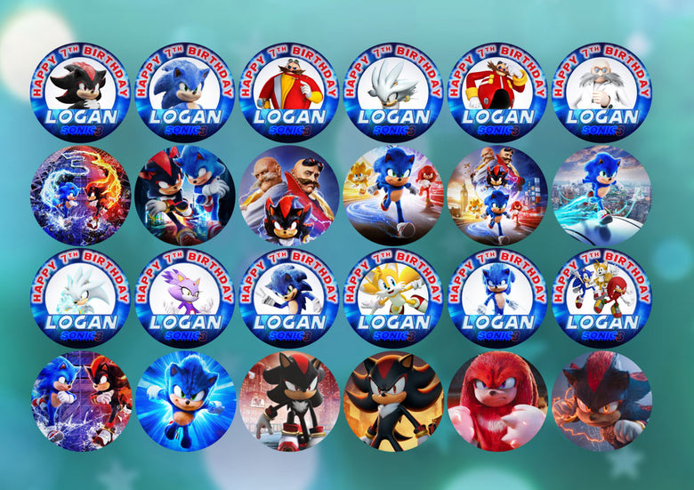 • Cute Personalized Sonic Birthday Button Pin Badge | Custom Magnet or Pin | 25mm, 44mm, 58mm, 75mm | Standard or Glitter Lamination