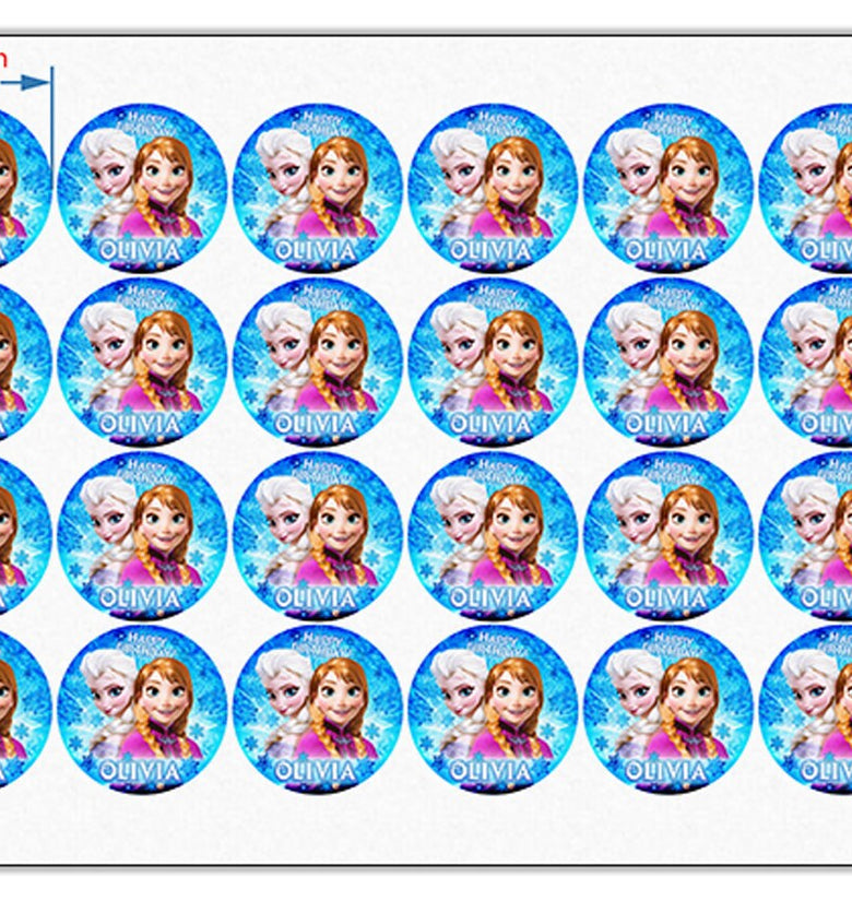 • Frozen Edible Cupcake Toppers - 24 Pre-Cut Pieces on Wafer Paper, Sugar Sheet, or without cutting Chocotransfer