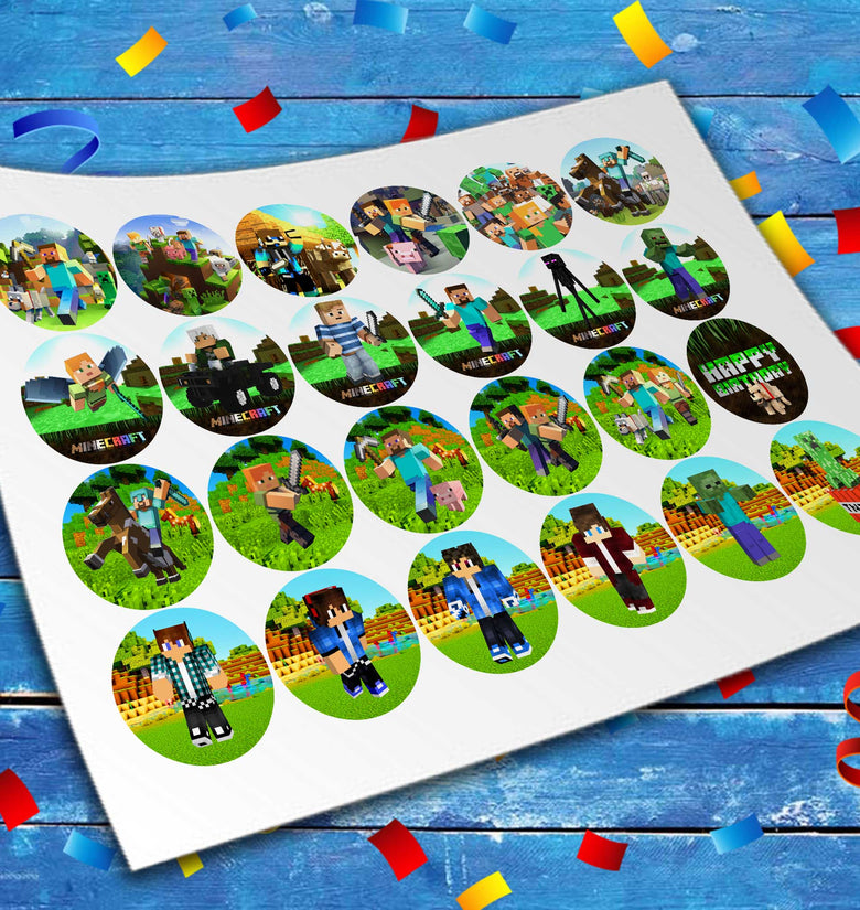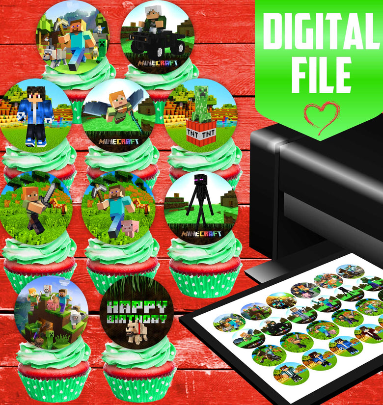 • Minecraft Edible Cupcake Toppers - 24 Pre-Cut Pieces on Wafer Paper, Sugar Sheet, or without cutting Chocotransfer