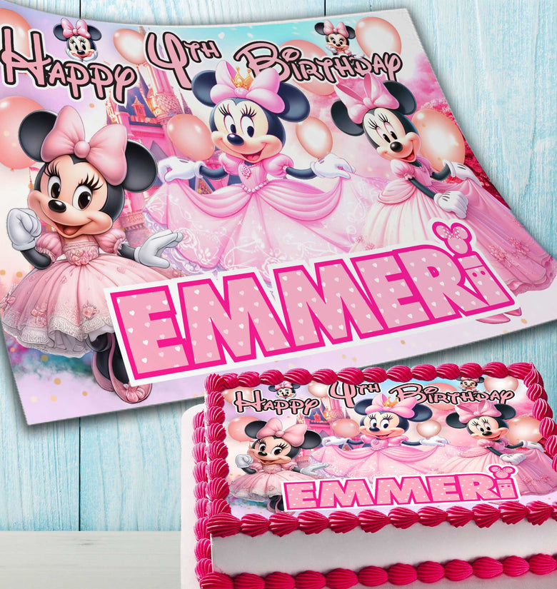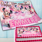 • Minnie Mouse Birthday Themed Edible Cake Topper - Rectangular Design - Wafer Paper, Sugar Sheet, Chocotransfer