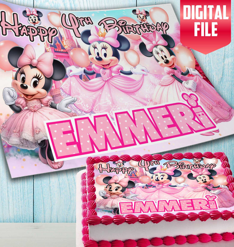 Minnie Mouse Birthday Themed Edible Cake Topper - Rectangular Design - Wafer Paper, Sugar Sheet, Chocotransfer