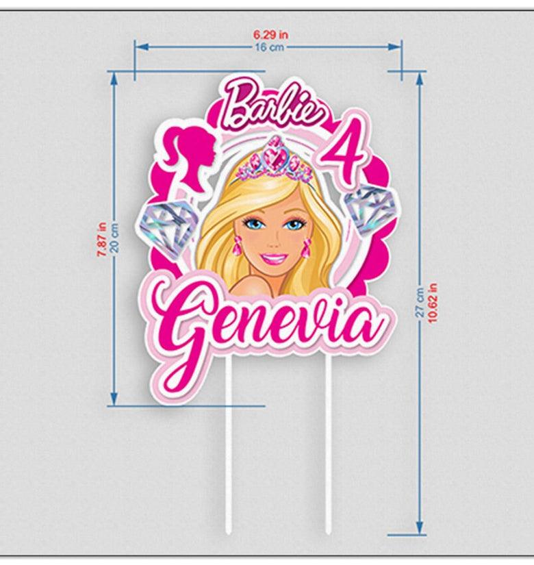 • Personalised Barbie Cake Topper - The Perfect Addition to Your Barbie Themed Party!
