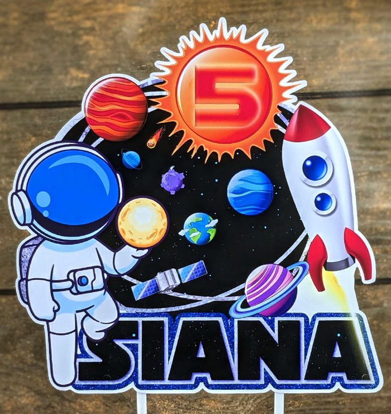 🎂 Personalized Little Astronaut Cake Topper 🎉 - Blast Off to a Stellar Celebration! 🌈🎈
