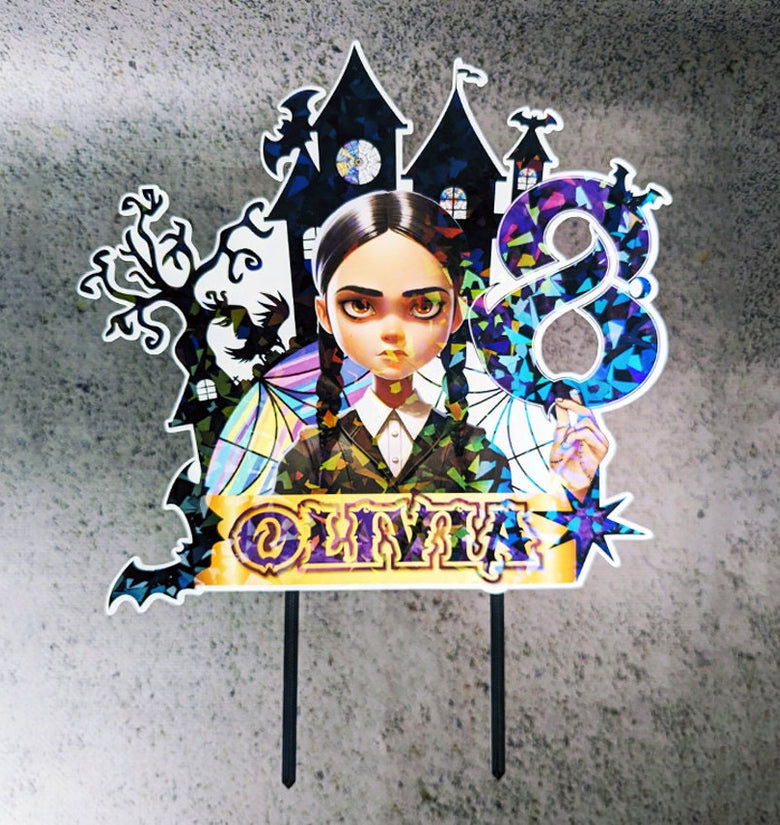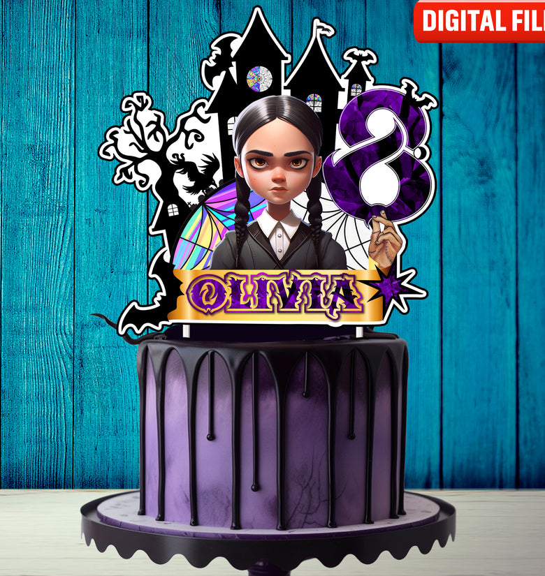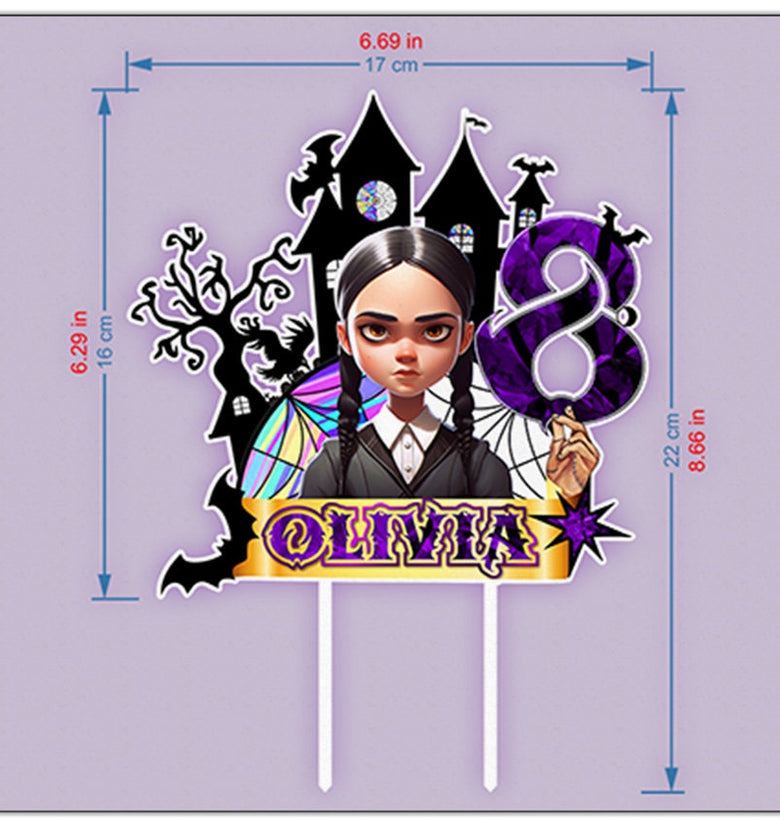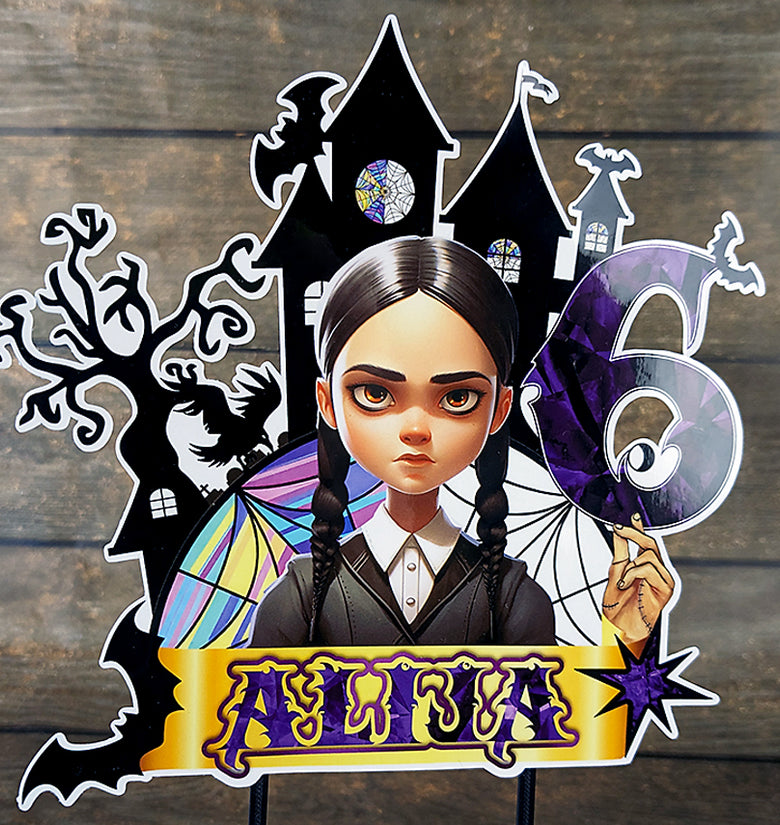🎂 Personalised Wednesday Addams Cake Topper 🎉 - Add the Perfect Touch of Colour to your Celebration! 🌈🎈