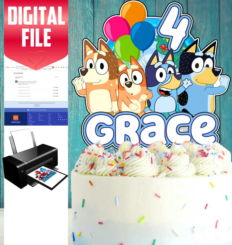 🎂 Personalized Bluey Cake Topper 🎉 - Add the Perfect Bluey Touch to Your Celebration! 🌈🎈