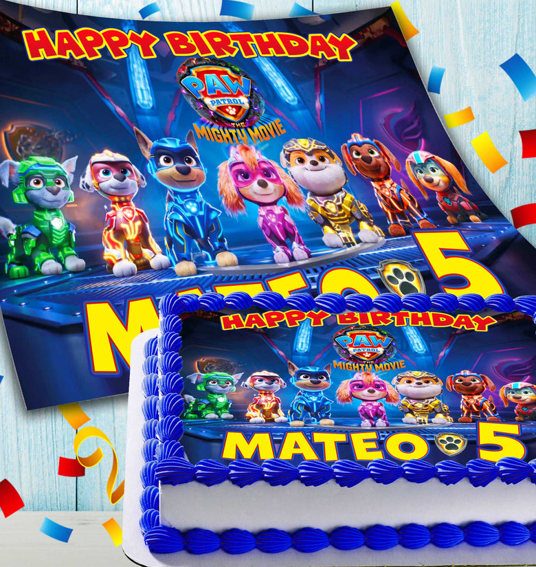 • Personalized Paw Patrol: The Mighty Movie Cake Decoration - Edible Birthday Topper - Rectangular Design - Wafer Paper, Sugar Sheet, Chocotransfer