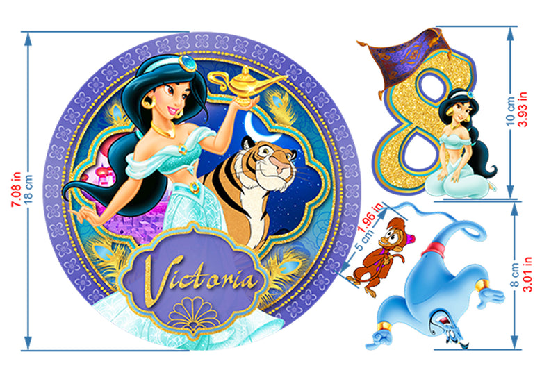 • Set of 4 Eastern Princess Jasmine Edible Cake Toppers - Precut on Wafer Paper, Sugar Sheet, or Chocotransfer without Cutting
