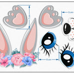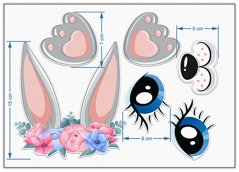 Set of 6 Bunny with Ears Edible Cake Toppers - Precut on Wafer Paper, Sugar Sheet, or without cutting Chocotransfer