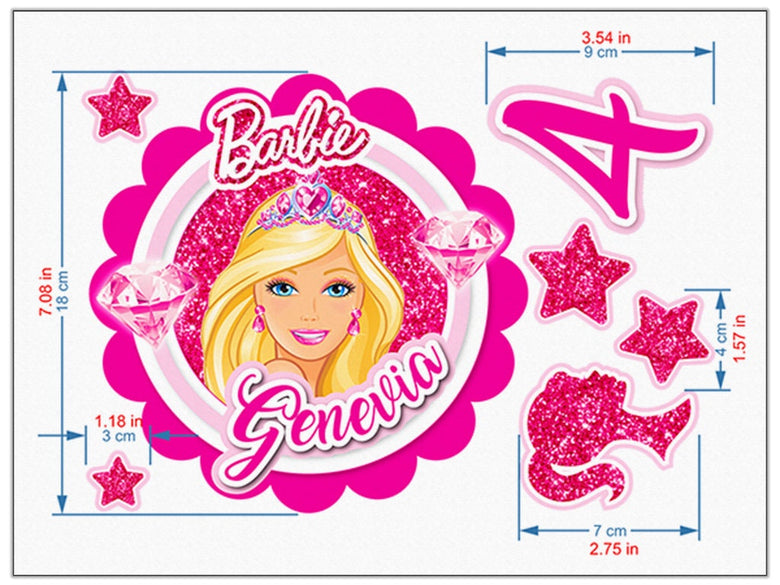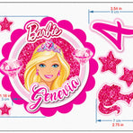 Set of 16 Barbie Cake Toppers – Edible Precut Images with Name & Age for Birthday Cake