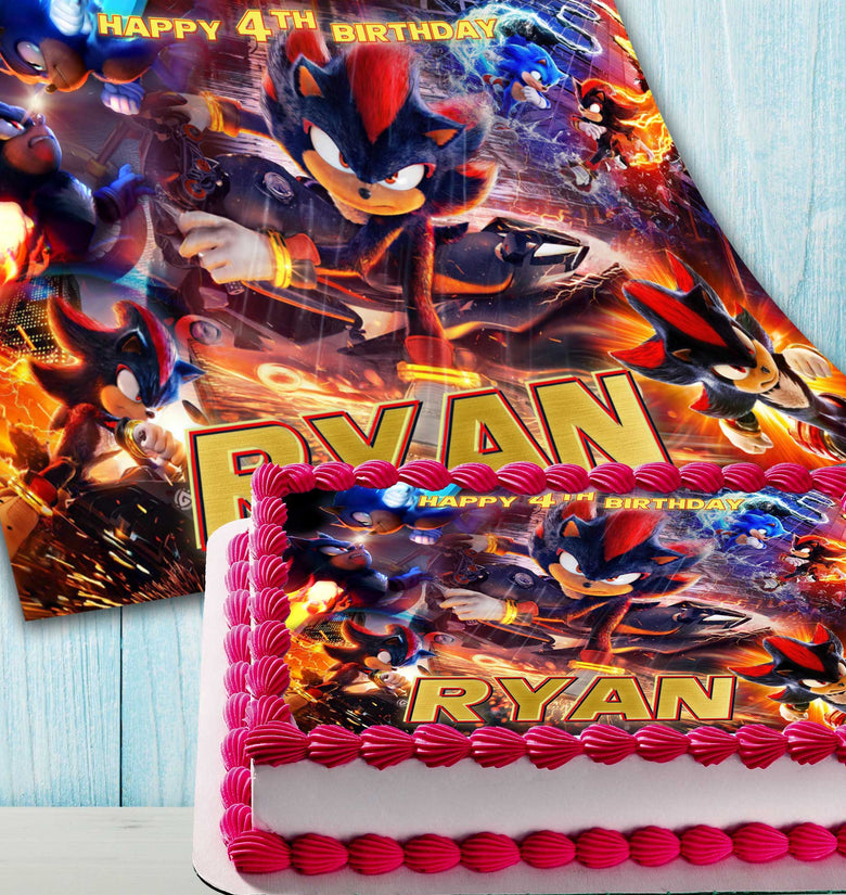 • Shadow the Hedgehog Birthday Edible Cake Topper - Sonic Theme - Rectangular Design - Wafer Paper, Sugar Sheet, Chocotransfer