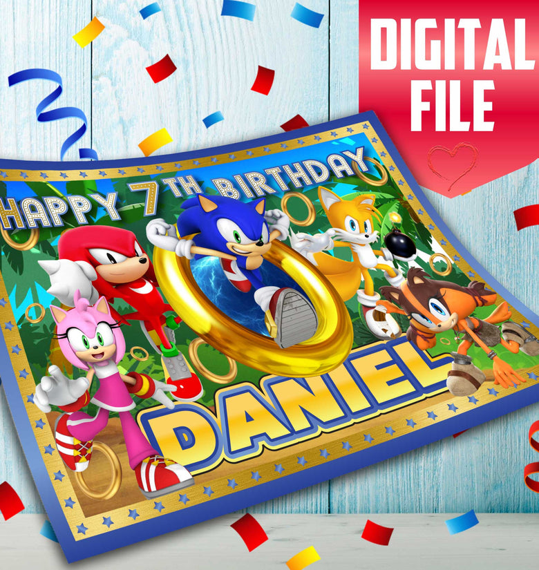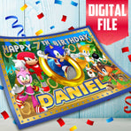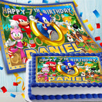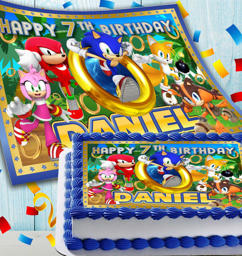 • Sonic Birthday Themed Edible Cake Topper - Rectangular Design - Wafer Paper, Sugar Sheet, Chocotransfer