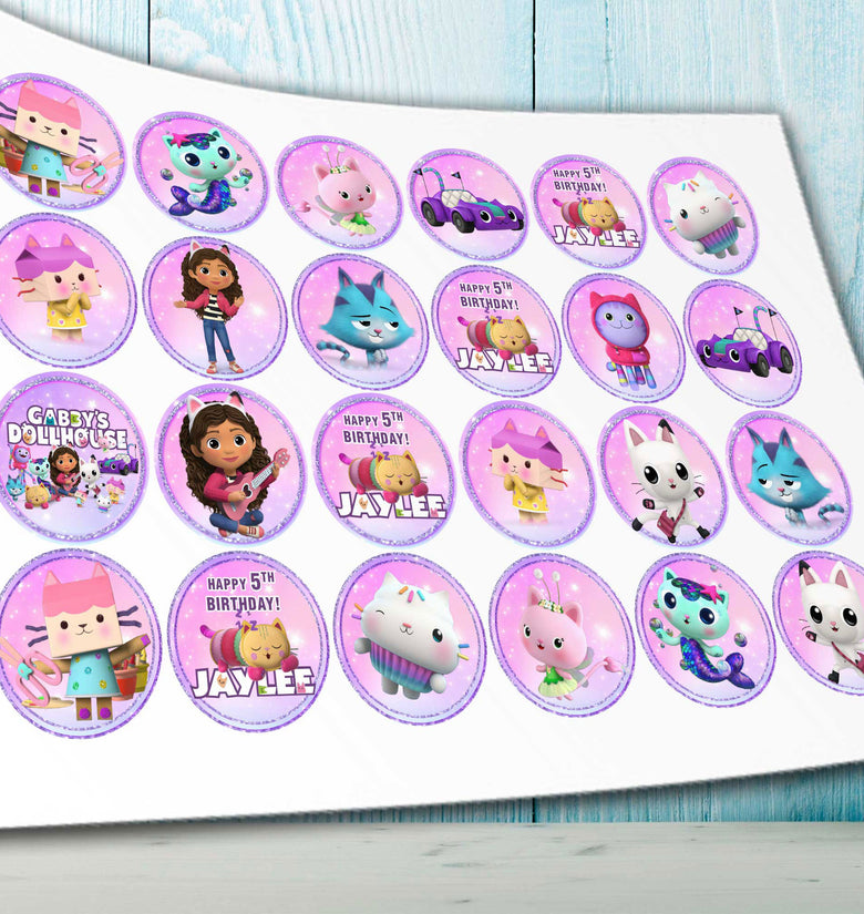 24 Gabby's Dollhouse Edible Cupcake Toppers - Precut on Wafer Paper, Sugar Sheet, or without cutting Chocotransfer